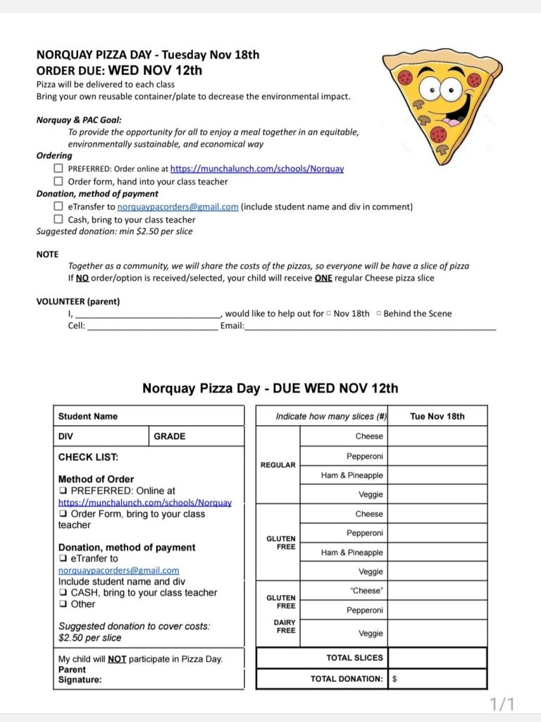 Payments via e-transfer (norquaypacorders@gmail.com) or cash to teachers.