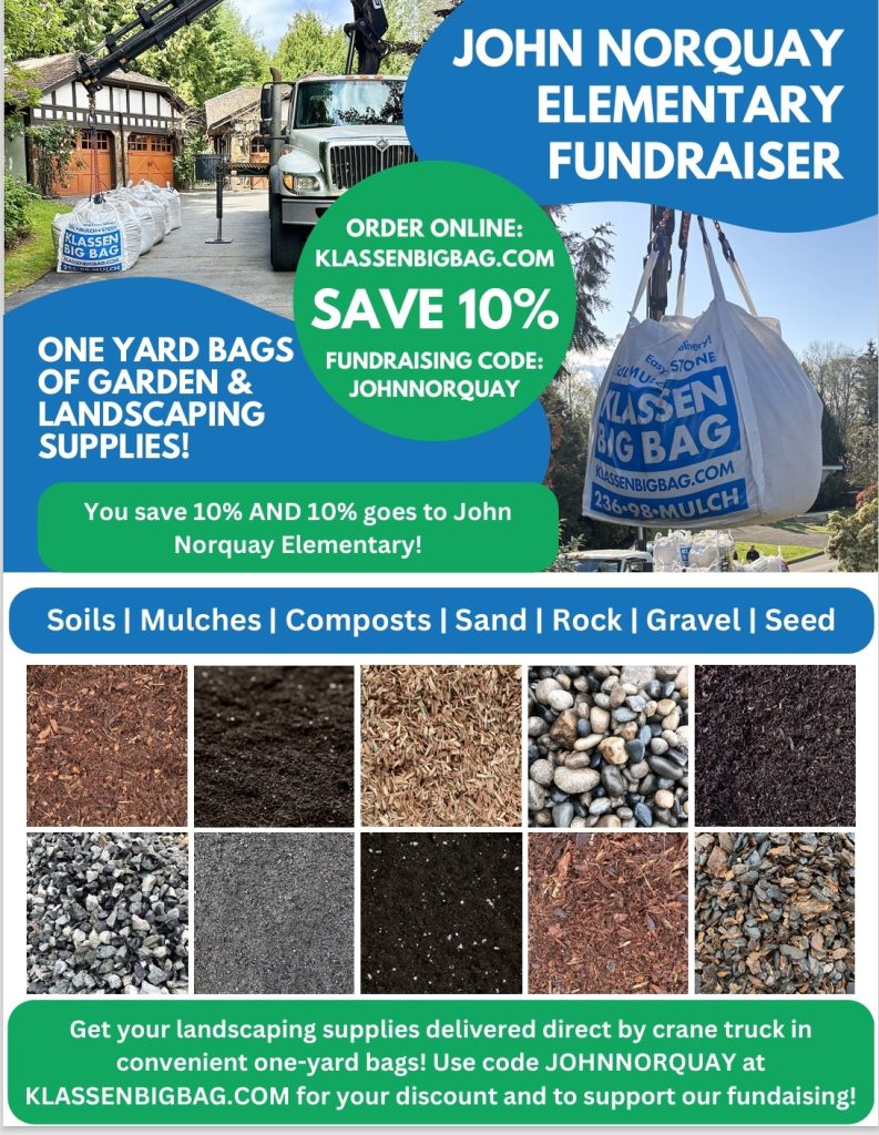 The Klassen Big Bag Fundraiser is on this year. When you order your 1 yard soil or mulch bags from
